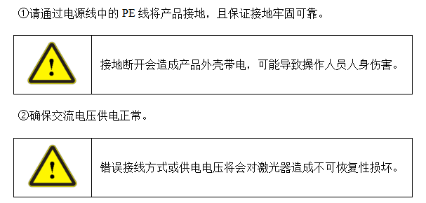 ①請(qǐng)通過(guò)電源線中的PE線將產(chǎn)品接地,且保證接地牢固可靠。