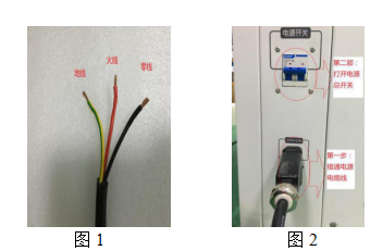 第1步:拿出電源線纜,接上220V/50Hz電源,紅色接火線,黑色接零線,黃色接地線。