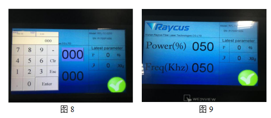 2)進(jìn)入?yún)?shù)設(shè)置頁(yè)面,Power(%)為百分比功率,F(xiàn)req(Khz)為頻率實(shí)際值,如圖7所示;