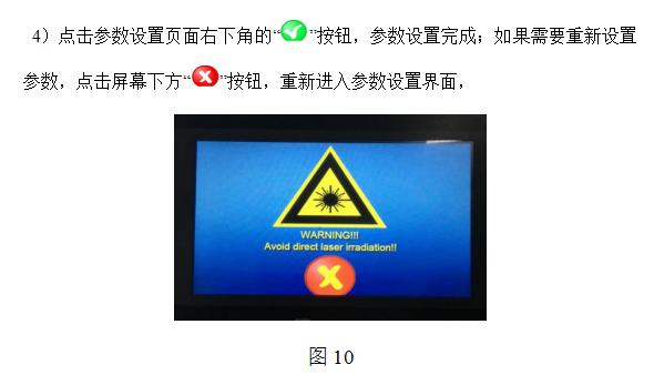 3)按下“激光”按鈕,激光綠色按鈕燈亮;